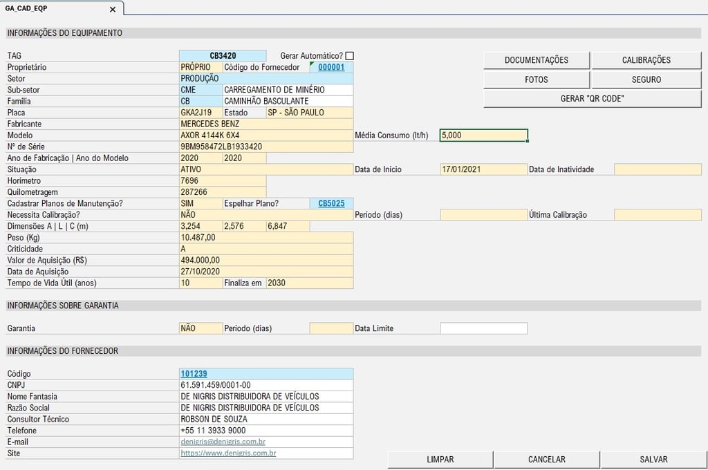Desenvolvimento de Tela: Cadastro de Equipamentos (GA_CAD_EQP)